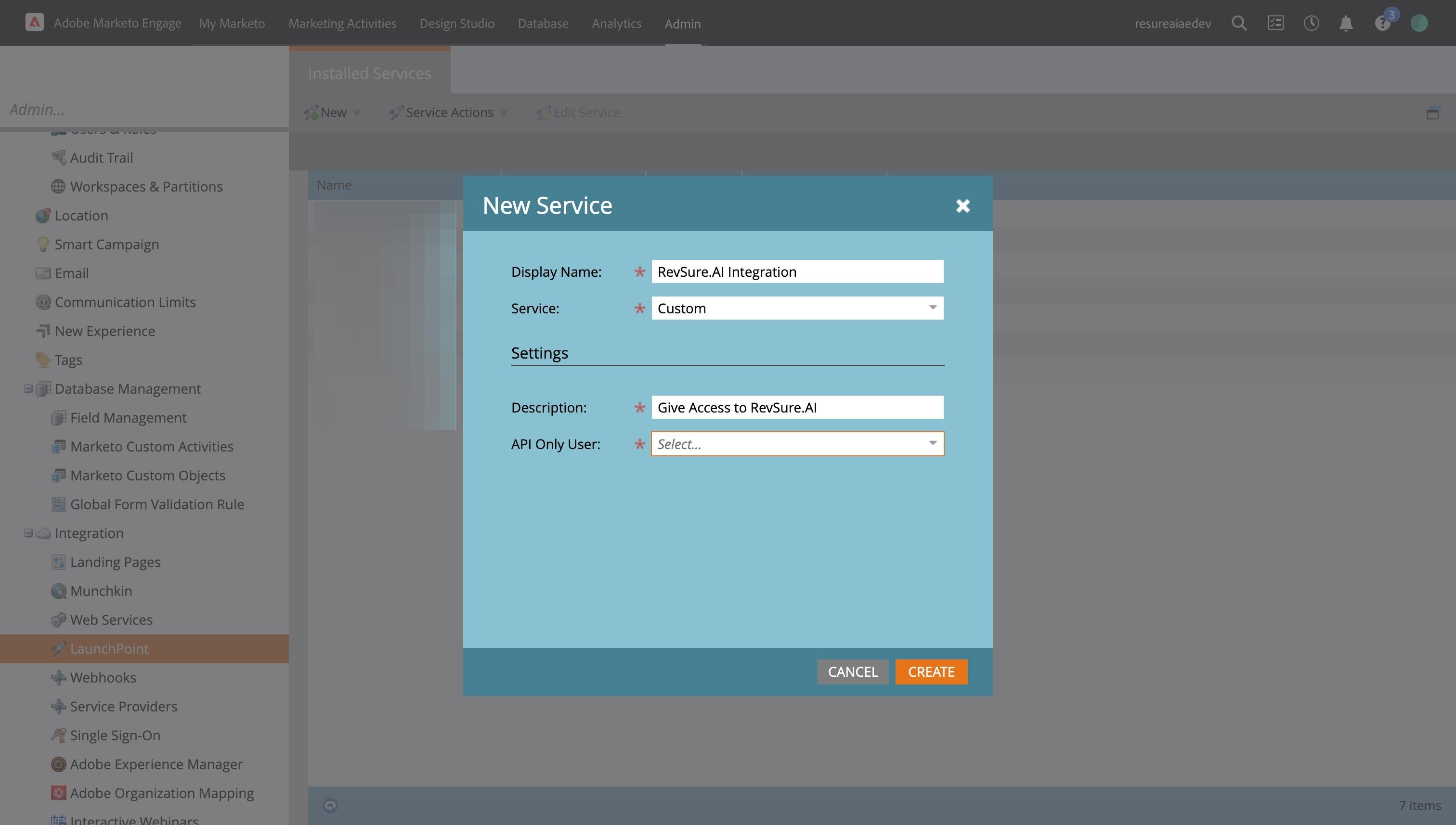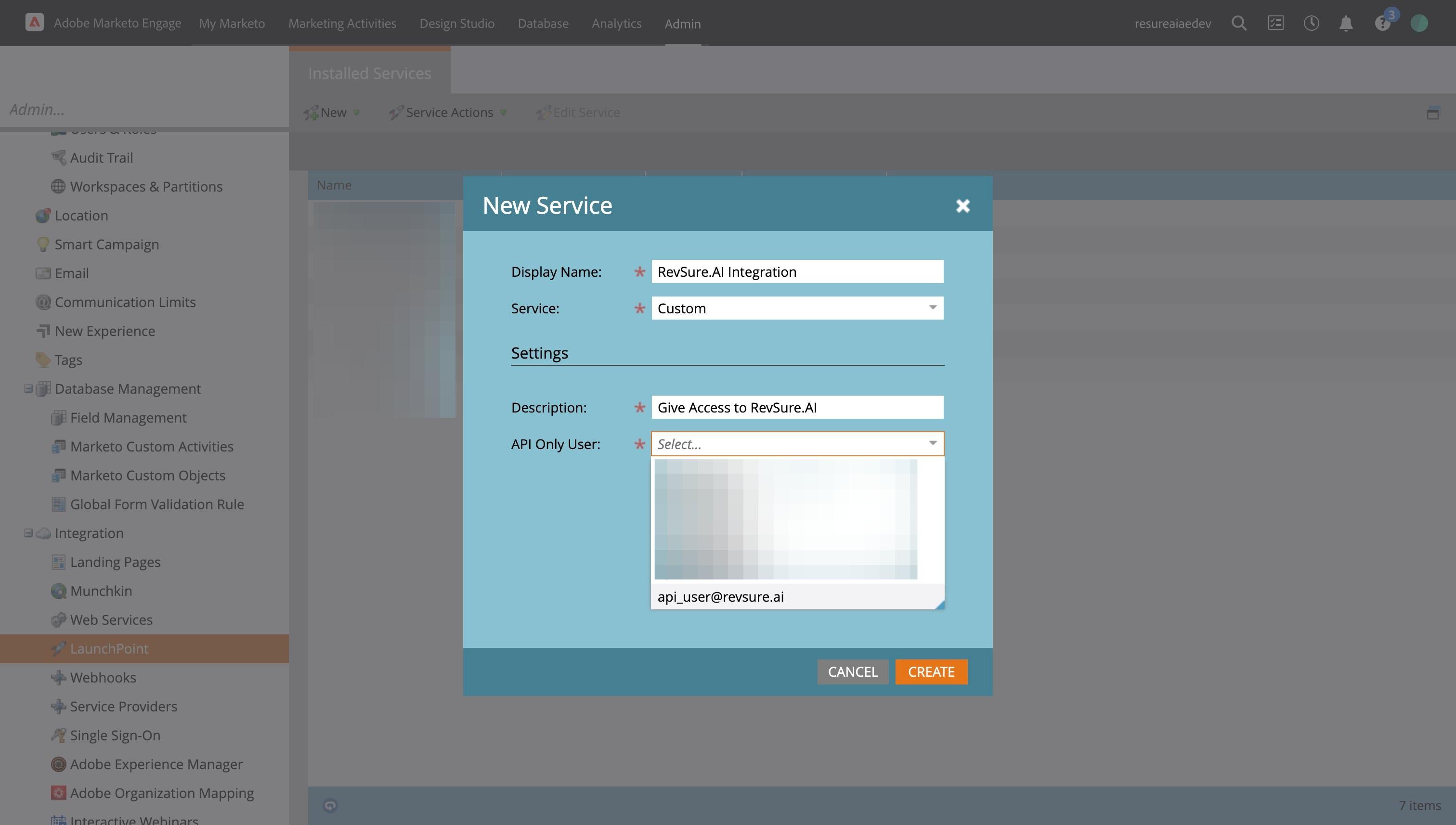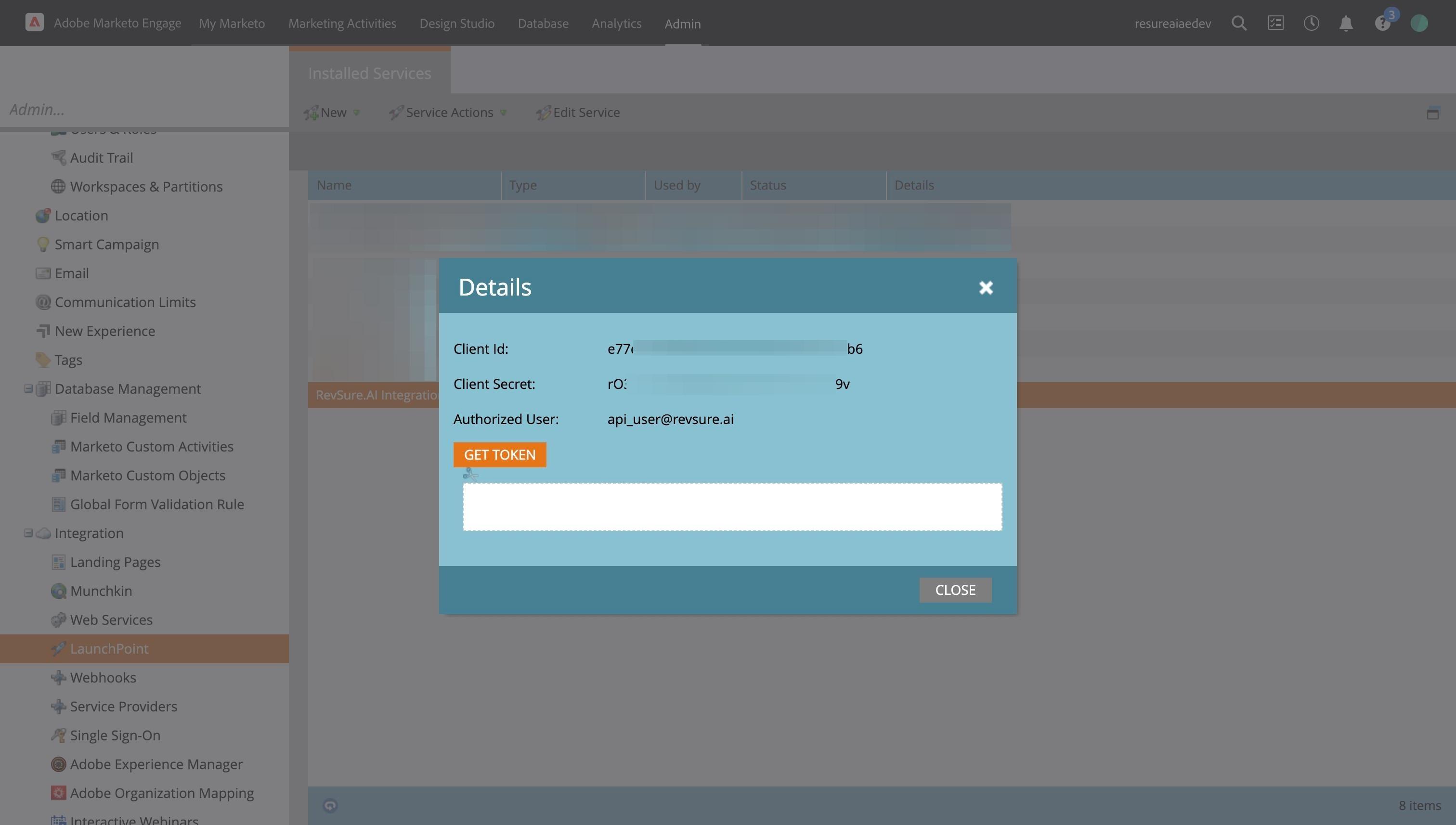 48. Navigate to RevSure tab and Paste the URL (Example: [https://XXX-XXX-XXX.mktorest.com]