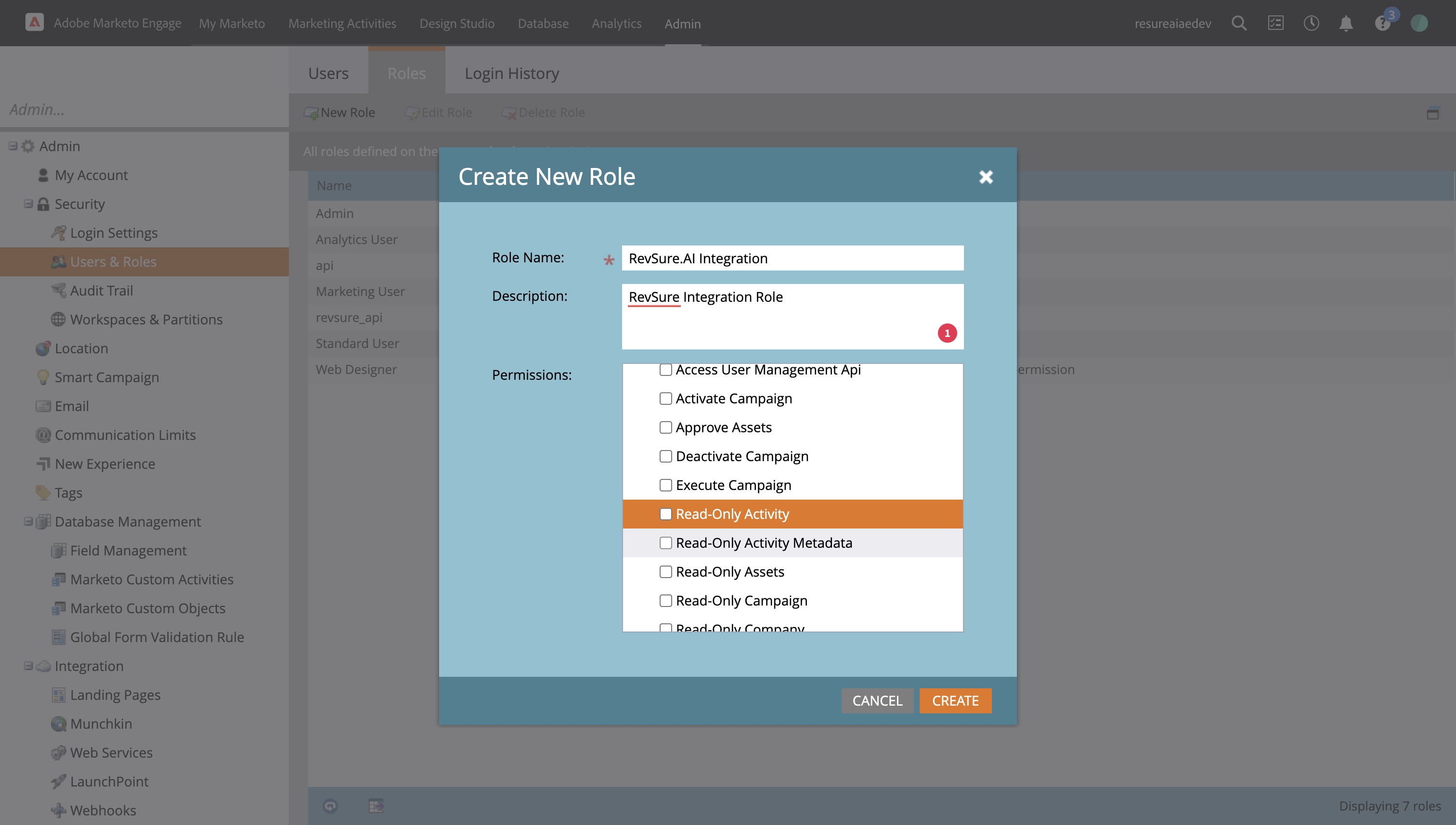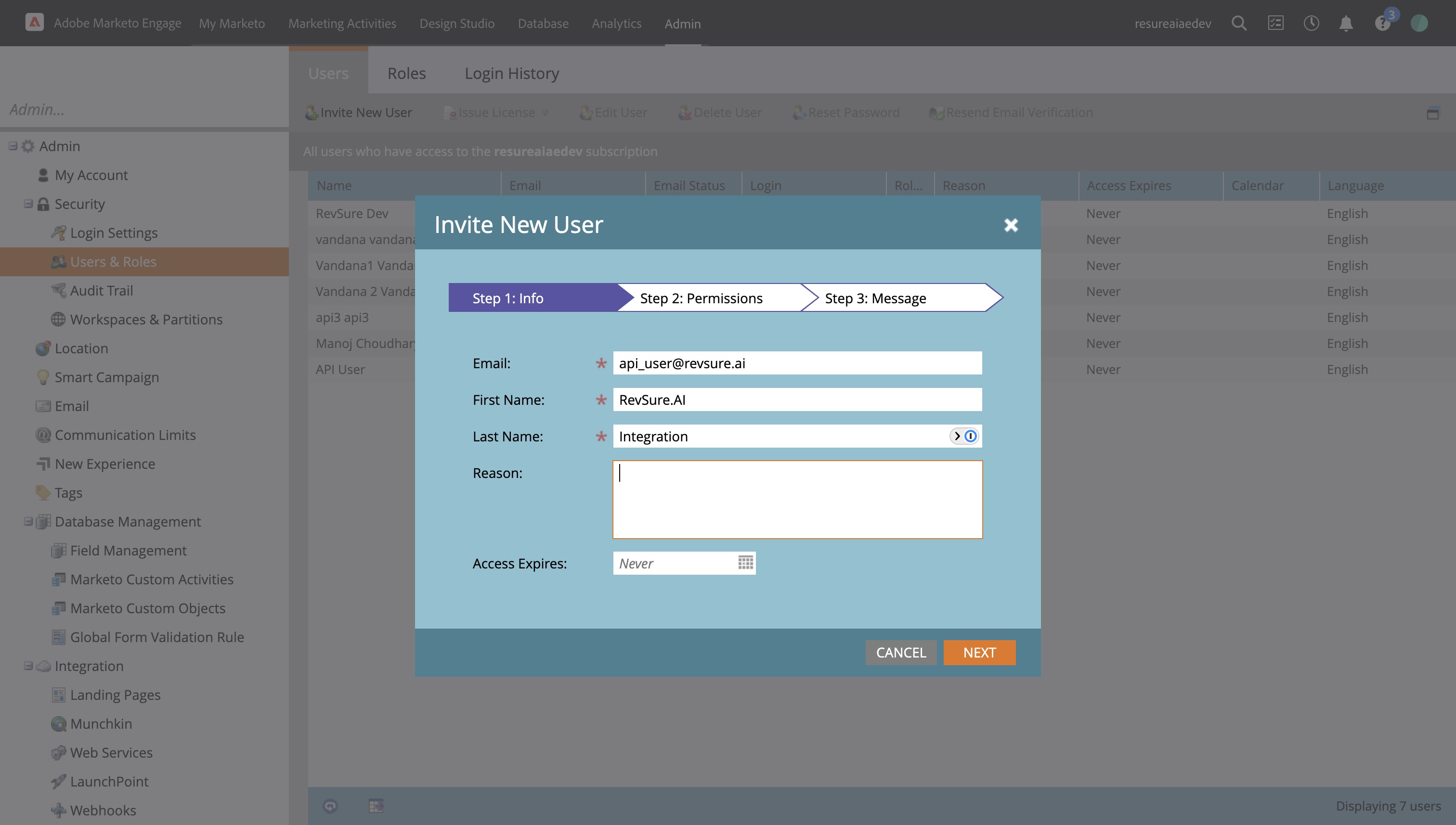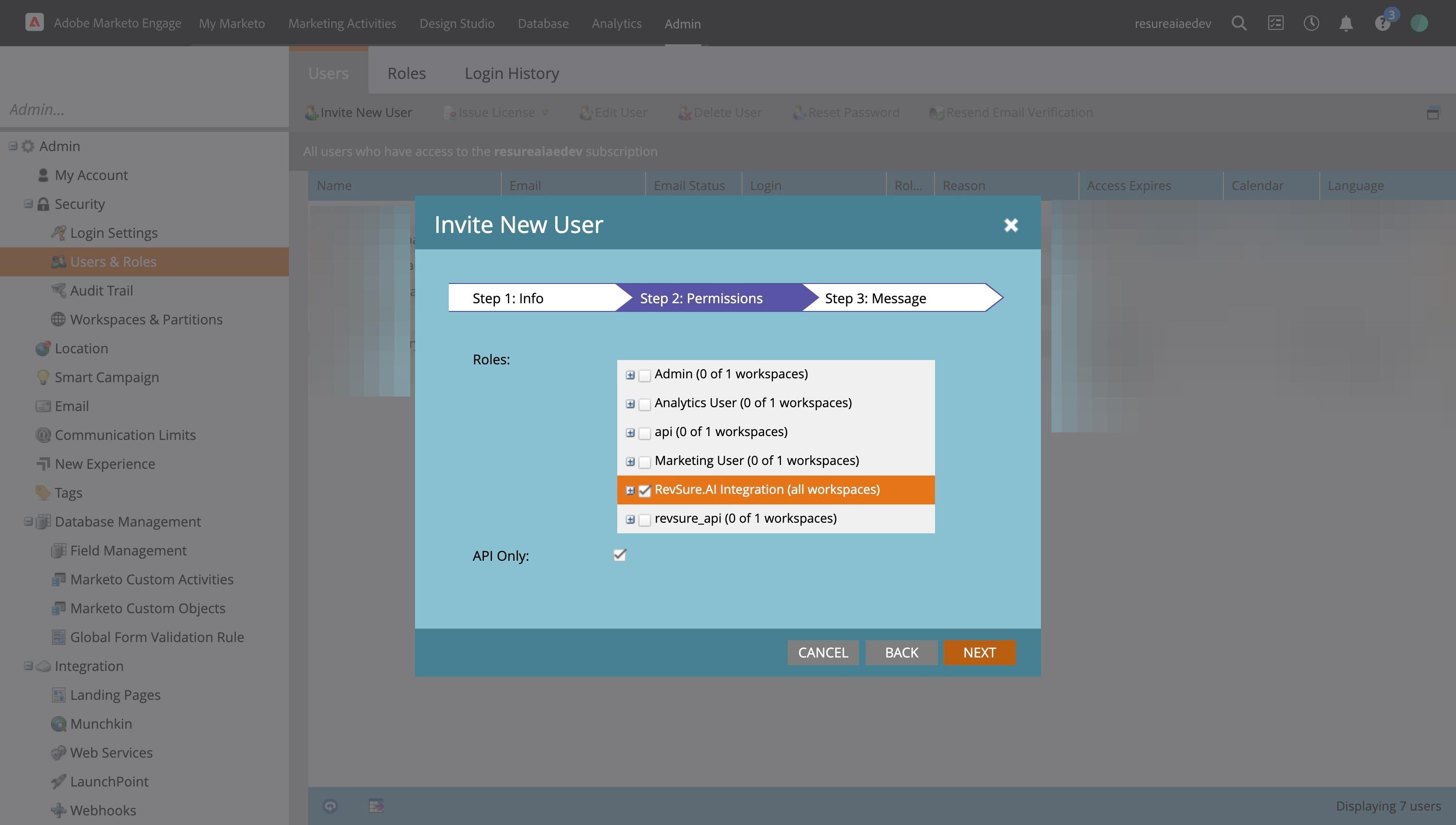 48. Navigate to RevSure tab and Paste the URL (Example: [https://XXX-XXX-XXX.mktorest.com]