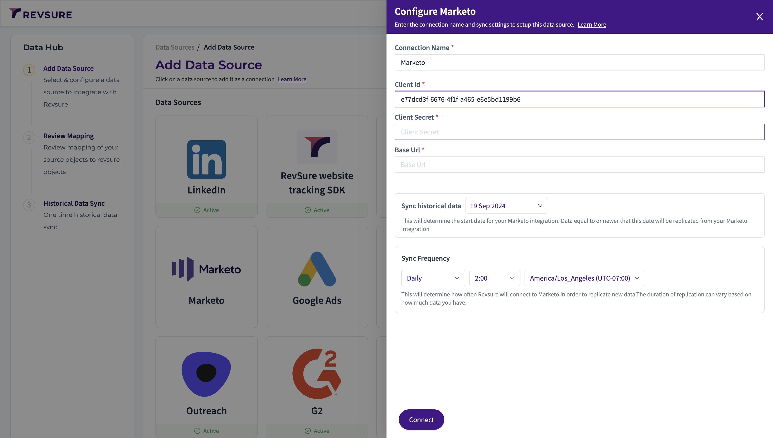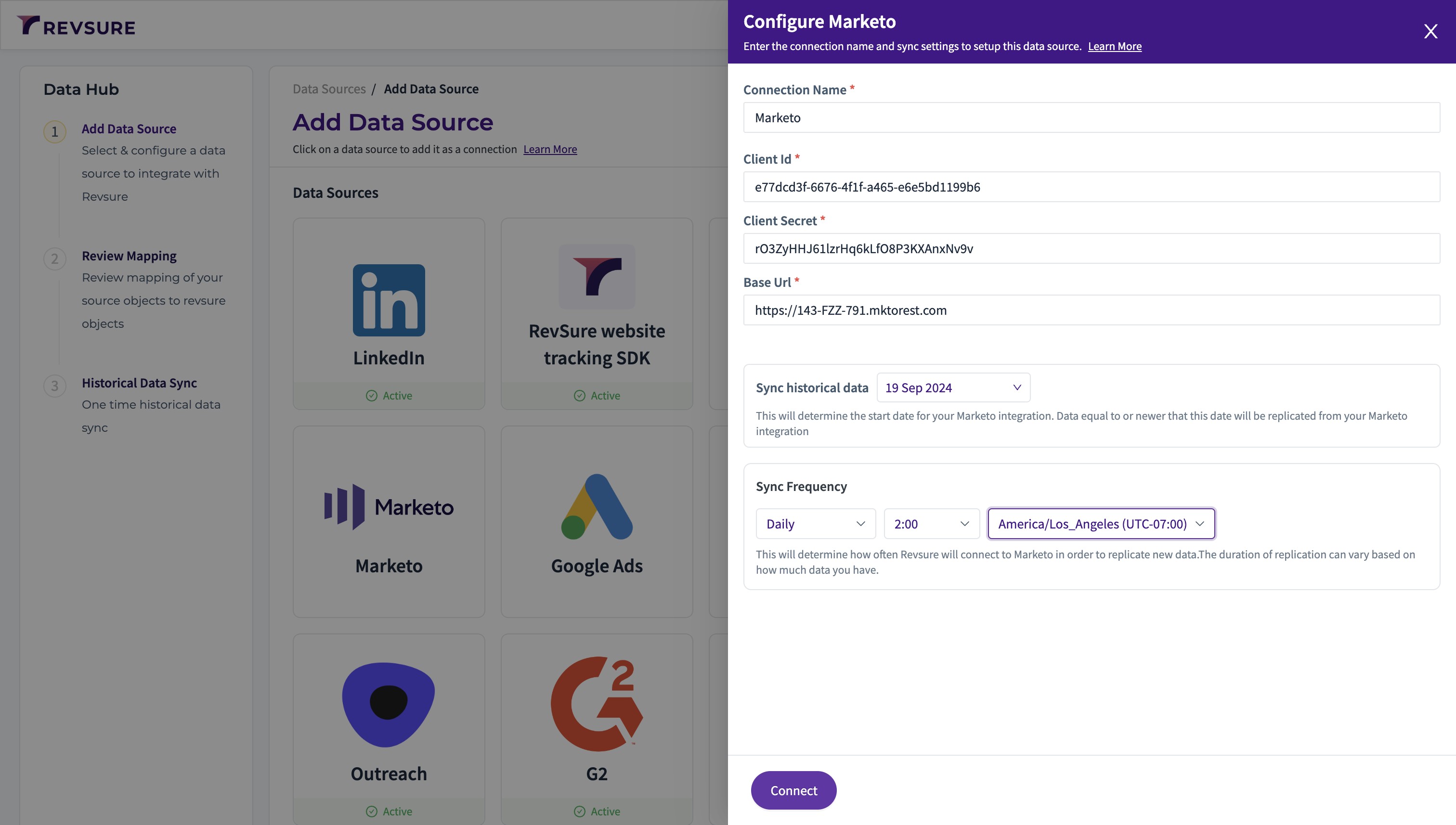 2. Select Marketo data source, and it will open a sidebar to configure the connection details