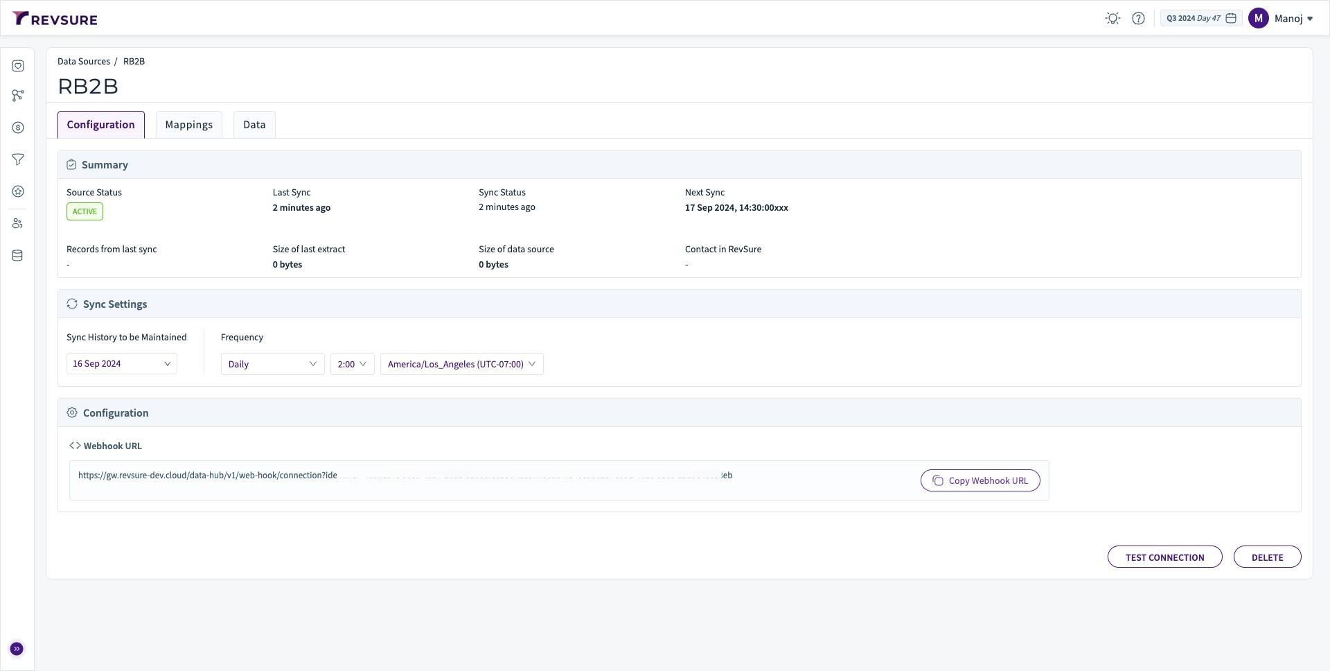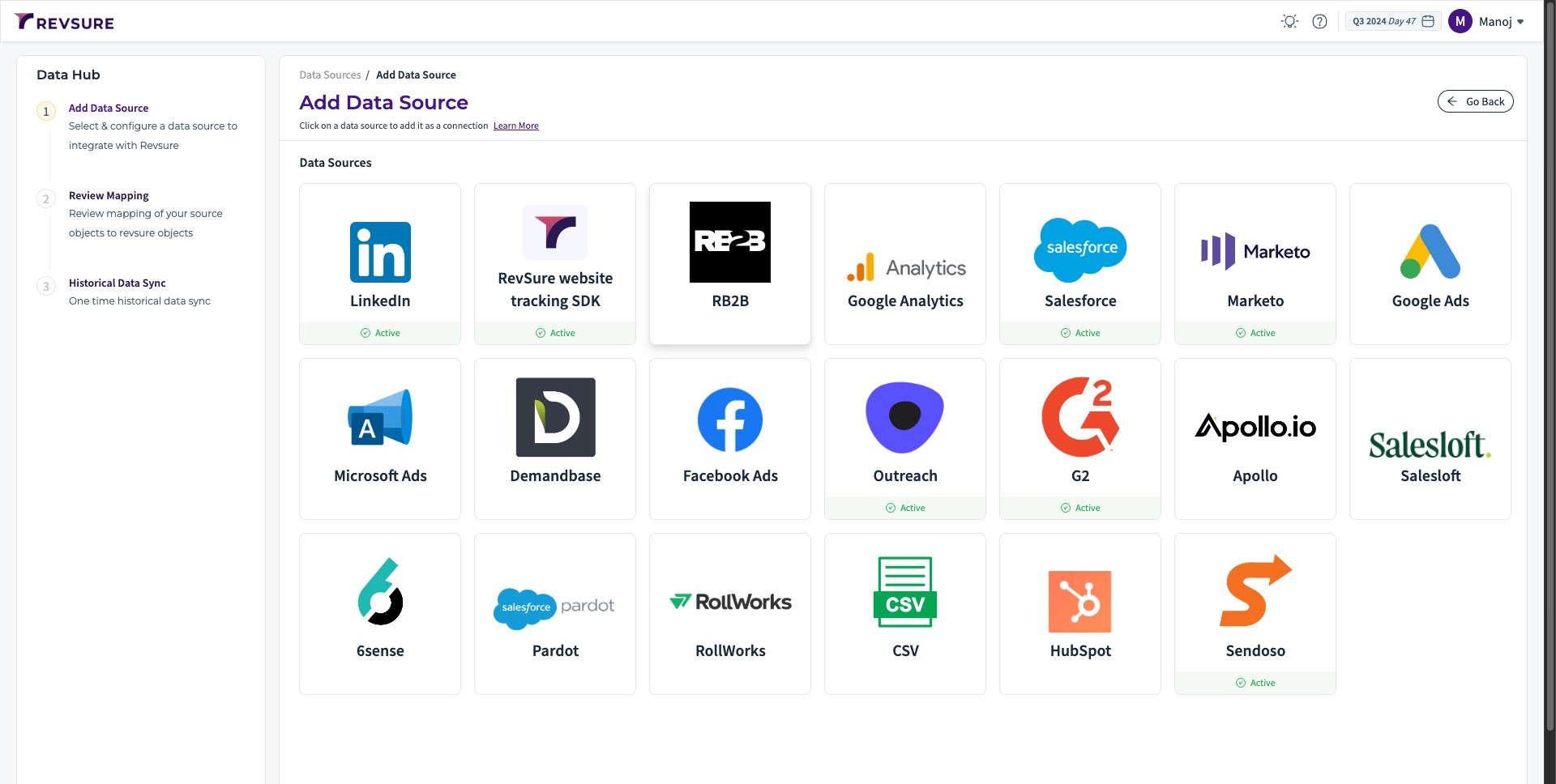 1. Navigate to the data-hub module in the RevSure account. Click on the Add data source button