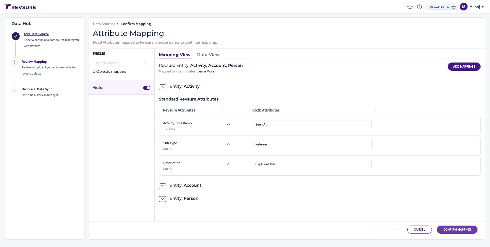 5. Click "CONFIRM MAPPING" to confirm mapping. Data source will be added, and you will be able to view sync status